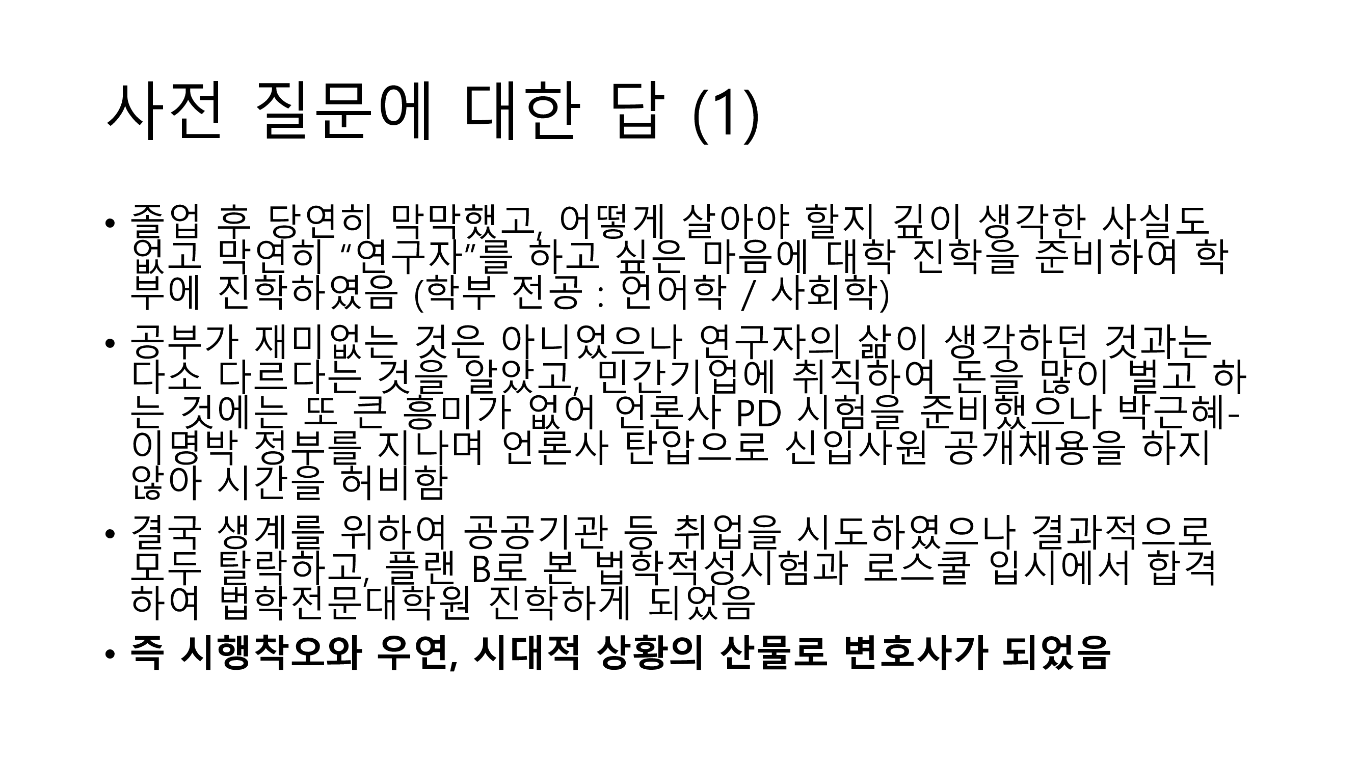 ÇÜÁã🐹: ÁغñÇÑ ¹ßÁ¦¸¦ ¸ðµÎ ¸¶Ä¡°í... ¹ý·ü Àü¹®°¡ÀÎ µ¿½Ã¿¡ ´ë¾È±³À°ÀÇ ¼ö·áÀڷμ ¿©·¯ Áú¹®À» ¹Þ´Â ½Ã°£À» °¡Á³½À´Ï´Ù. Çлýµé¿¡°Ô´Â (Çܺ¯µµ, Àúµµ ´ç½Ã¿¡ ±×·¯ÇÏ¿´µí) µüÈ÷ Á¤ÇØÁöÁö ¾ÊÀº ¹Ì·¡¿Í Áø·Î¿¡ ´ëÇÑ '¸·¿¬ÇÑ ºÒ¾È°¨'ÀÌ Áú¹®ÀÇ ±Ù¿øÀÌÀÚ °í¹Î°Å¸®ÀÎ °Í °°¾Ò½À´Ï´Ù. »ç½Ç Çܺ¯µµ ÀÌ·¯Àú¸® ±¼·¯´Ù´Ï°í Çì¸Å¸é¼(?) »ç´Â óÁöÀ̱⿡ ¸ðµÎ¿¡°Ô ¸íÄèÇÑ ´äÀ» ³»¾îÁÙ ¼ö´Â ¾ø¾úÀ» °Í °°³×¿ä. ±×³É ¸¹Àº °æÇèÀ» ÇØº¸°í(ȤÀº ÇÏÁö ¾Ê¾Æµµ ÁÁ°í) ÇÏ°í ½ÍÀº °ÍÀ» ÇÏÀÚ!! ¶ó´Â °ÍÀÌ °á·ÐÀ̾ú´ä´Ï´Ù. |