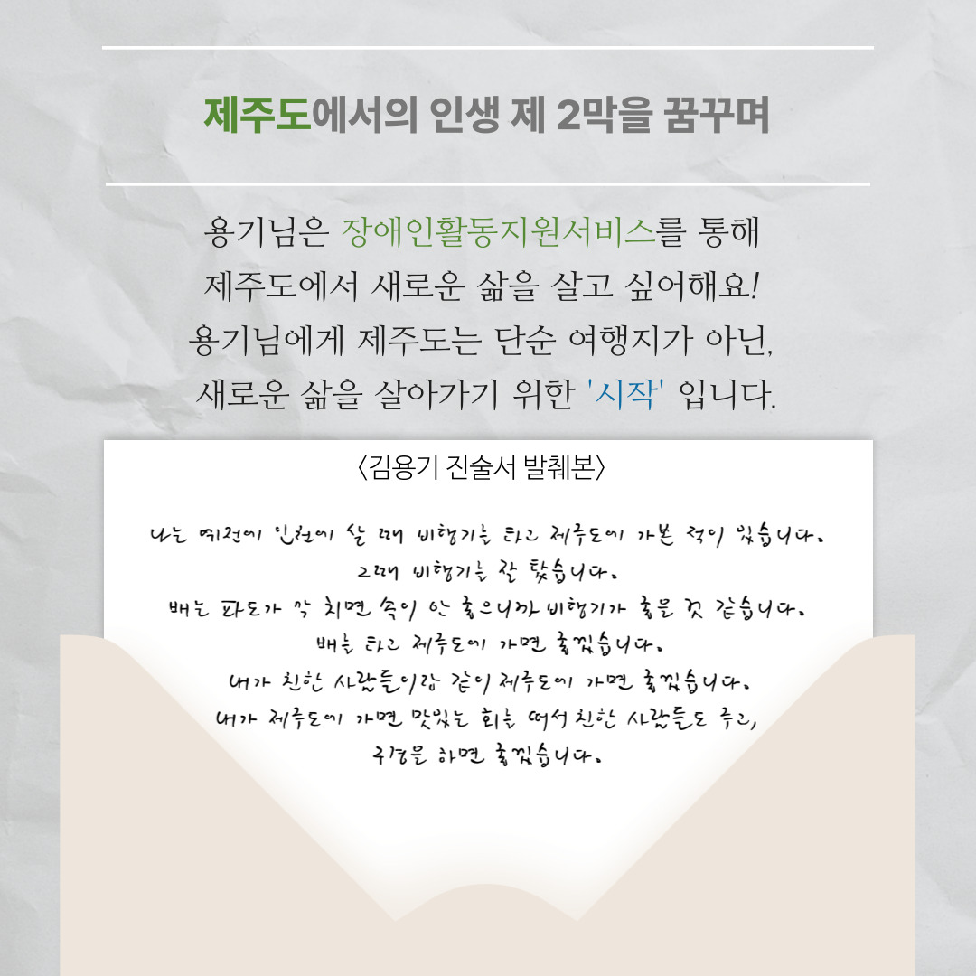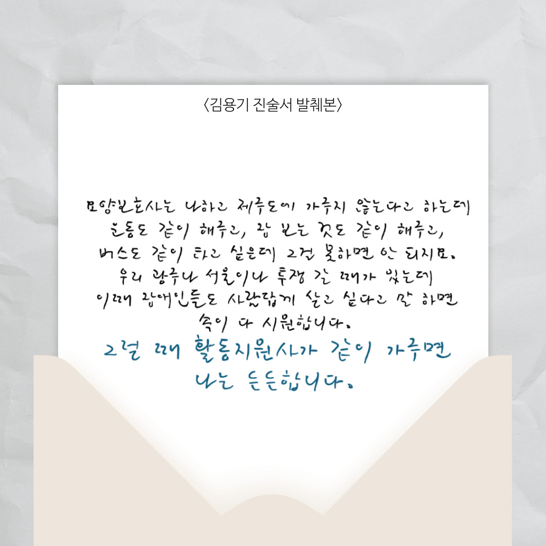 ±×·¯³ª ÀÌÈÄ °³Á¤µÈ Á¶Ç×ÀÌ Çå¹ý»óÀÇ ±âº»±Ç°ú Àå¾ÖÀÎȰµ¿Áö¿ø¹ýÀÇ ¸ñÀûÀ» Àß ½ÇÇöÇϰí ÀÖ´Ù°í º¸±â´Â ¾î·Æ½À´Ï´Ù. Àå¾ÖÀÎÀÌ ÀÚ¸³ÀûÀ¸·Î Áö¿ª»çȸ¿¡ ¼ÓÇϰí Âü¿©ÇÒ ¼ö ÀÖ´Â ±Ç¸®, ´ç»çÀÚÀÇ ÁÖ°üÀû ÀÚ¸³¿å±¸¿Í ±× ÀÇ»ç´Â ƯÁ¤ ¿¬·É°ú´Â ÀüÇô »ó°ü¾ø´Â °ÍÀ̰ŵç¿ä. ±×·³¿¡µµ 65¼¼ ÀÌ»óÀÇ È¥ÀÚ¼ ÀÏ»ó»ýȰ°ú »çȸ»ýȰÀ» Çϱ⠾î·Á¿î Àå¾ÖÀÎÀº Ȱµ¿Áö¿ø¼ºñ½º ½ÅûÀÚ°ÝÀ» °®Áö ¸øÇϰí ÀÖ½À´Ï´Ù.